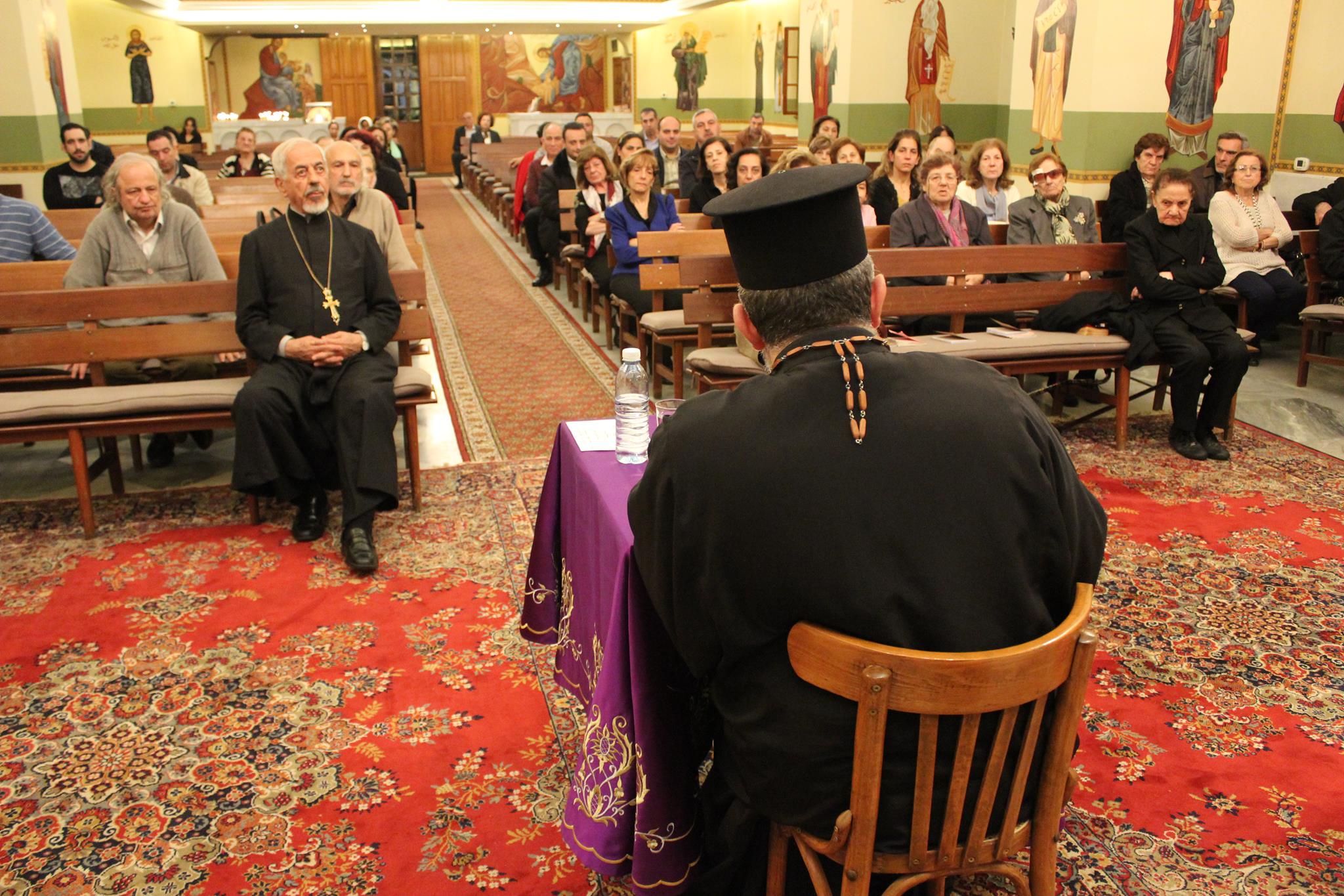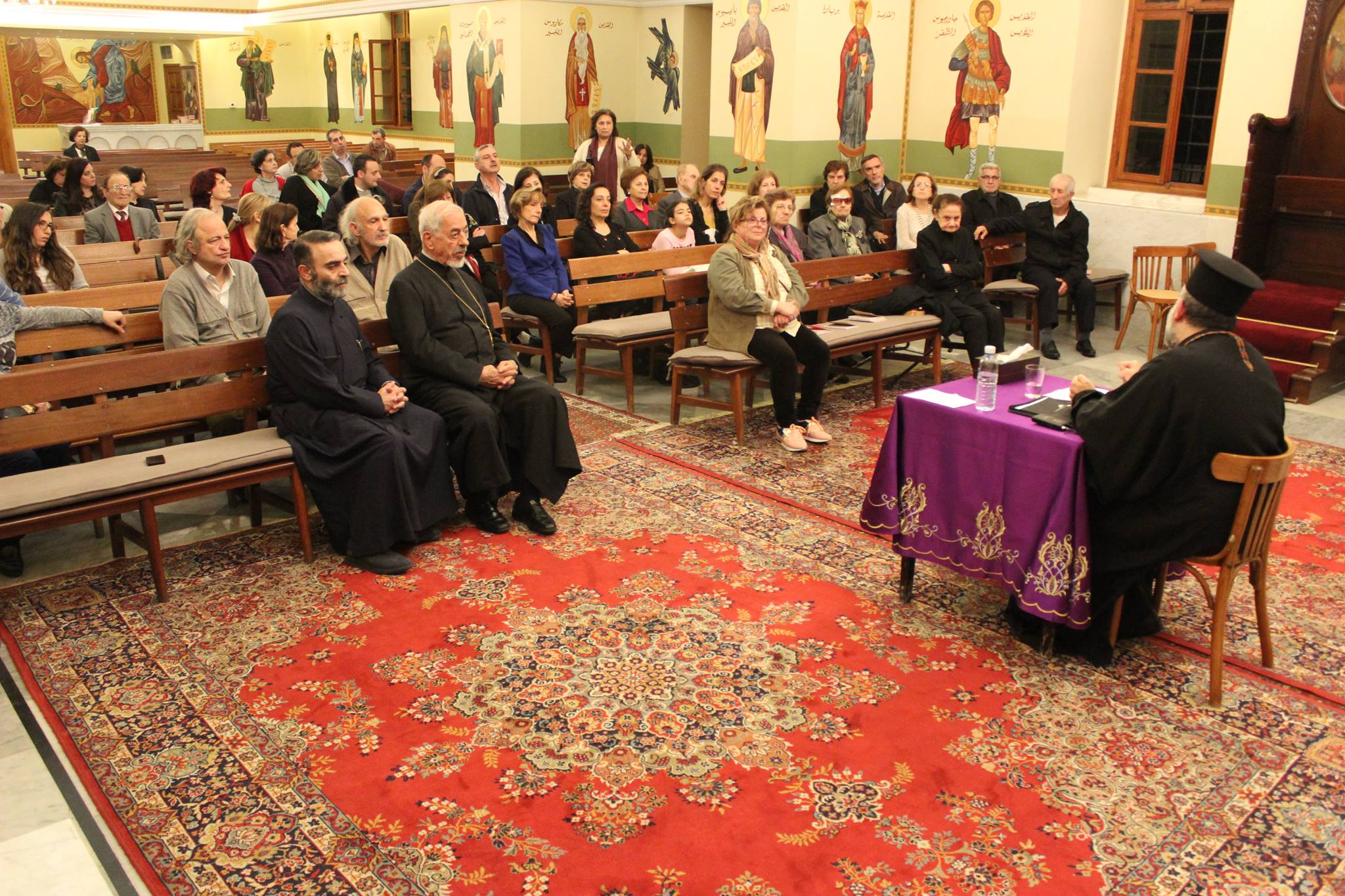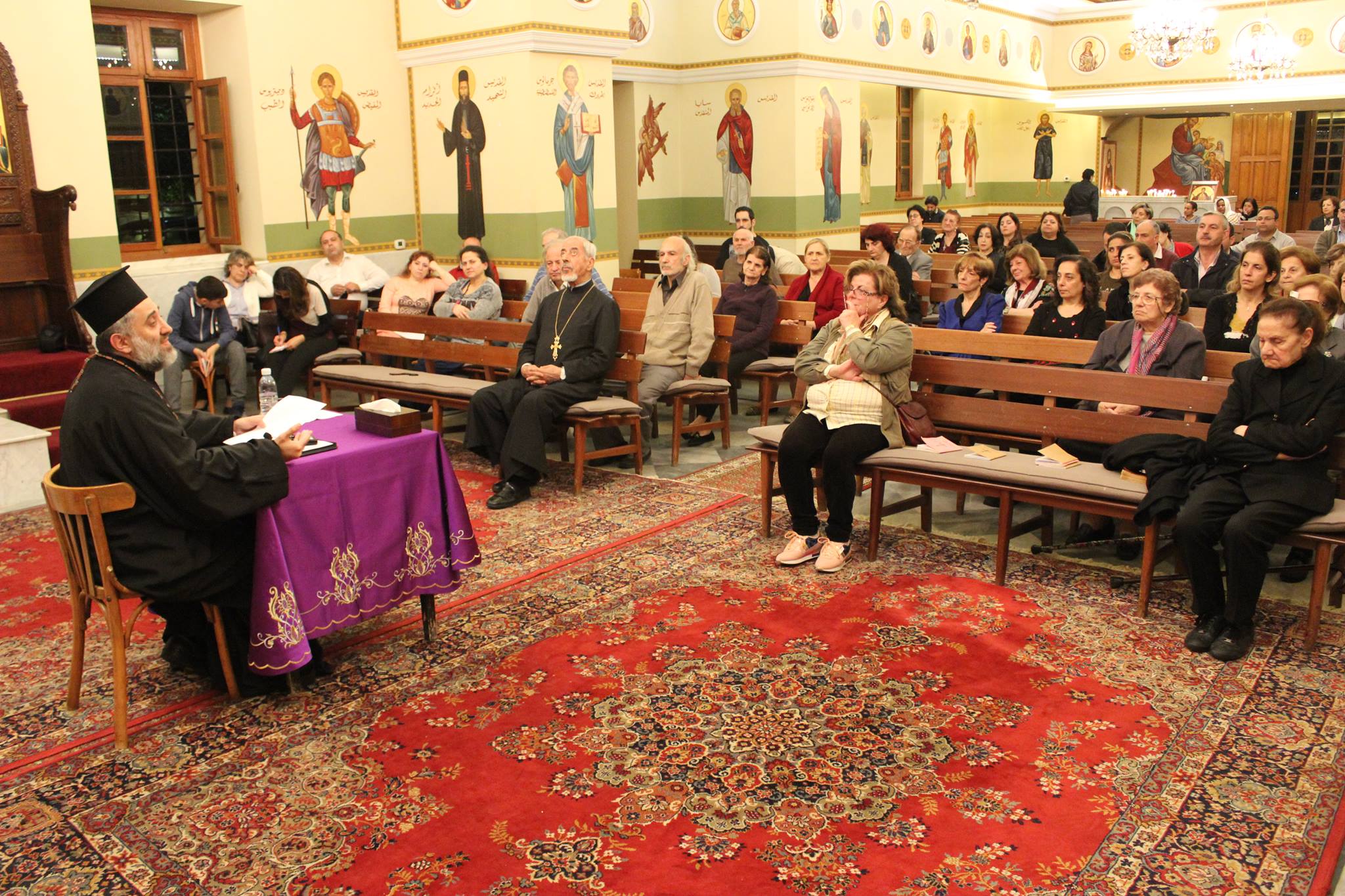 مساء الثلاثاء الواقع في 4 نيسان 2017 تحلّق عدد من المؤمنين حول أحد أبناء الرّعيّة عميد كليّة اللاهوت في جامعة البلمند ألمتقدم في الكهنة الاب بورفيريوس جورجي الذي ألقى محاضرة بعنوان ” قيامة المسيح نورٌ وحياة” من وحي مسيرة الكنيسة في فترة الصّوم الأربعيني المقدّس وصولاّ إلى فجر القيامة حيث يستضيء الجميع بنور القيامة