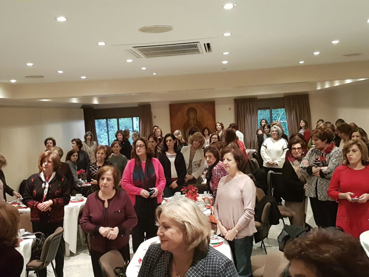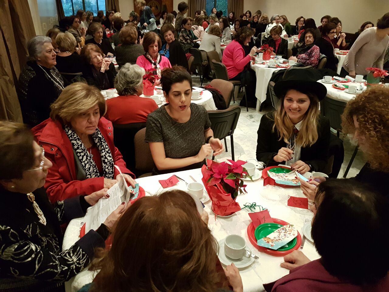 More than one hundred ladies gathered on Saturday, December 17 to take part in the traditional Christmas tea. Father Germanos and Father Nicholas blessed the food and sang two hymns with Evelyn Chatila to set the tone for this celebration on the birth of Christ. Two young ladies created a festive Christmas atmosphere singing Christmas carols and inviting the ladies to sing along. Santa Claus arrived with gifts to a joyful reception.